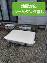 地震により、ホームタンクが家側に傾いてしまったとの事です。